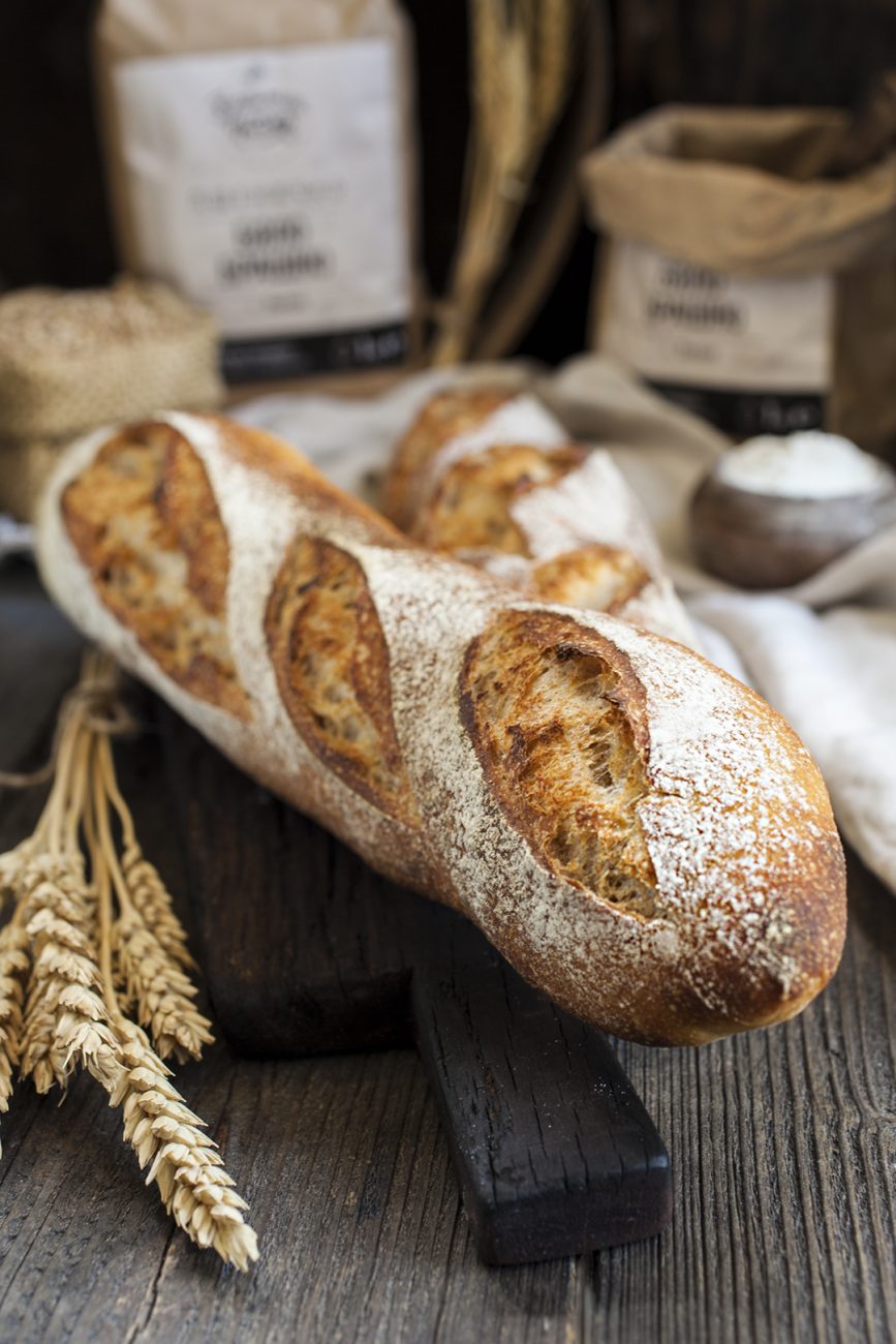 Изпечете в предварително загрята фурна на 230 °C за около 30 минути или докато получат желания загар. Поставете купички с вода на дъното на фурната, за да осигурите пара. След изпичането, оставете багетите да се охладят поне 1 час.