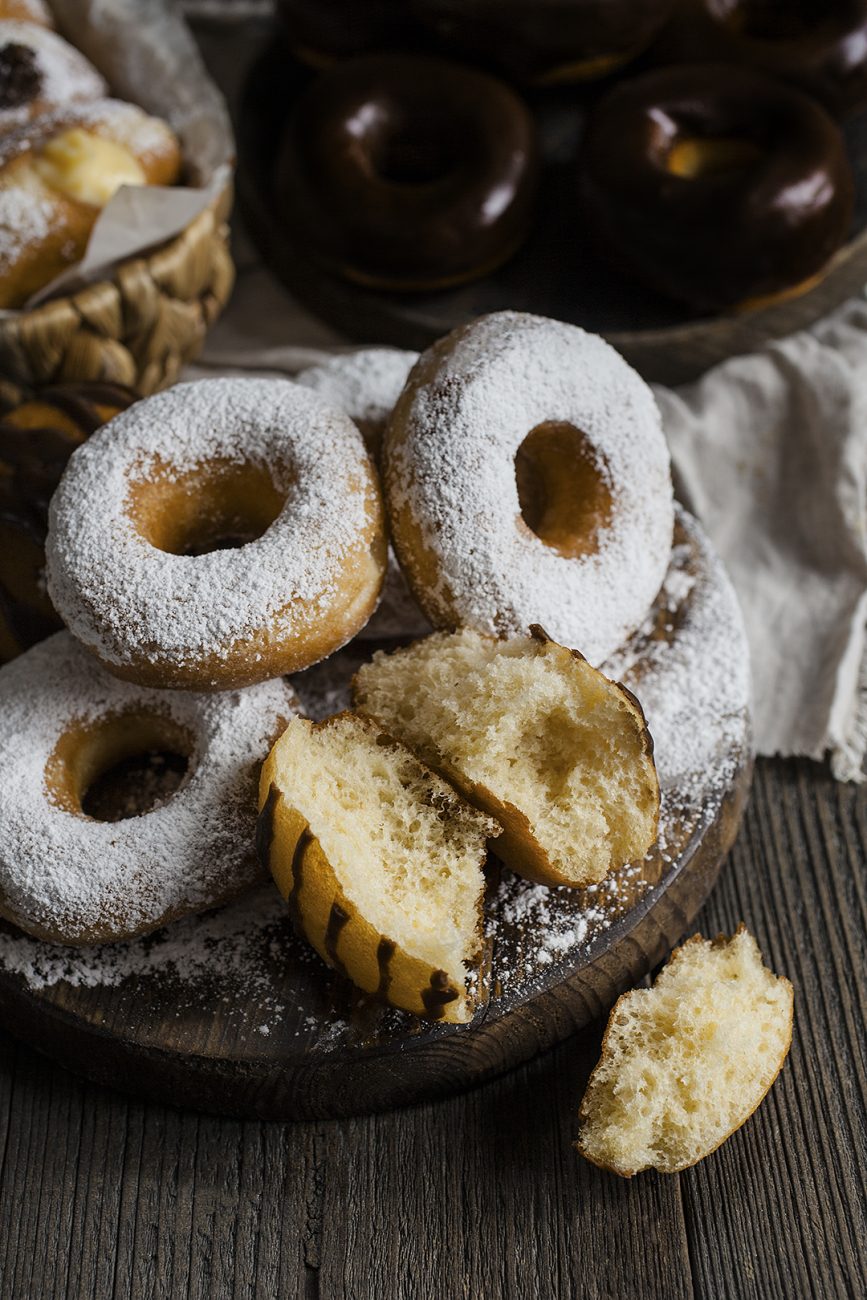 След изстиване, напълнете с любимият си сладкарски крем, течен шоколад или сладко, а другите оваляйте в пудра захар или топнете в шоколадов ганаш!