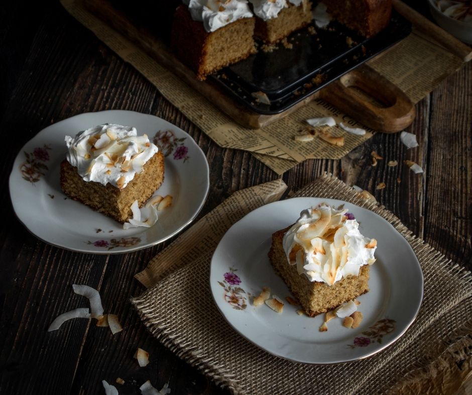 Прибавяте кокосовите стърготини, киселото мляко и содата и разбивате отново.