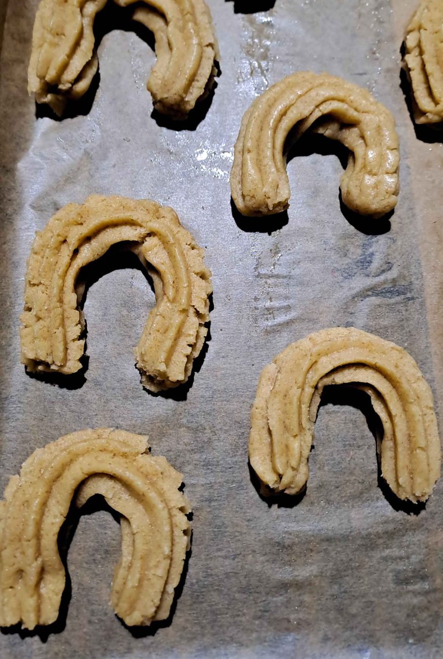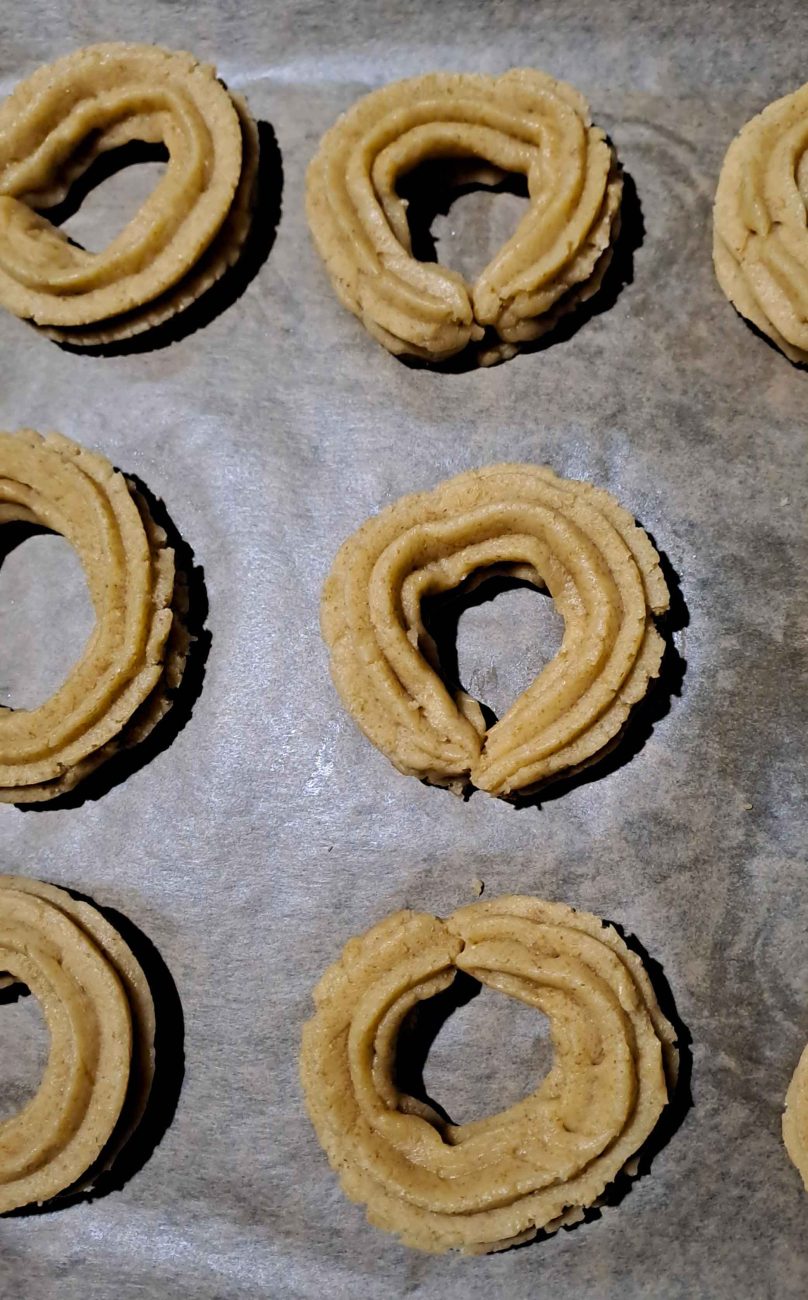 Изсипете тестото в пош със звездовиден накрайник и шприцовайте в желаната форма върху тава, покрита с хартия за печене.