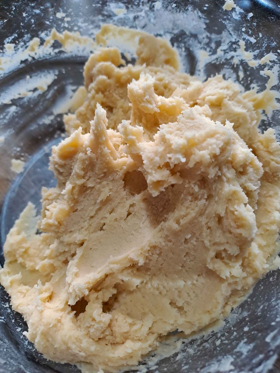 Разбъркайте маслото и захарта до хубав крем. Добавете яйцата и жълтъците едно по едно, докато се усвоят напълно. В отделна купа смесете брашната с бакпулвера, ванилията и лимоновата кора, ако използвате.