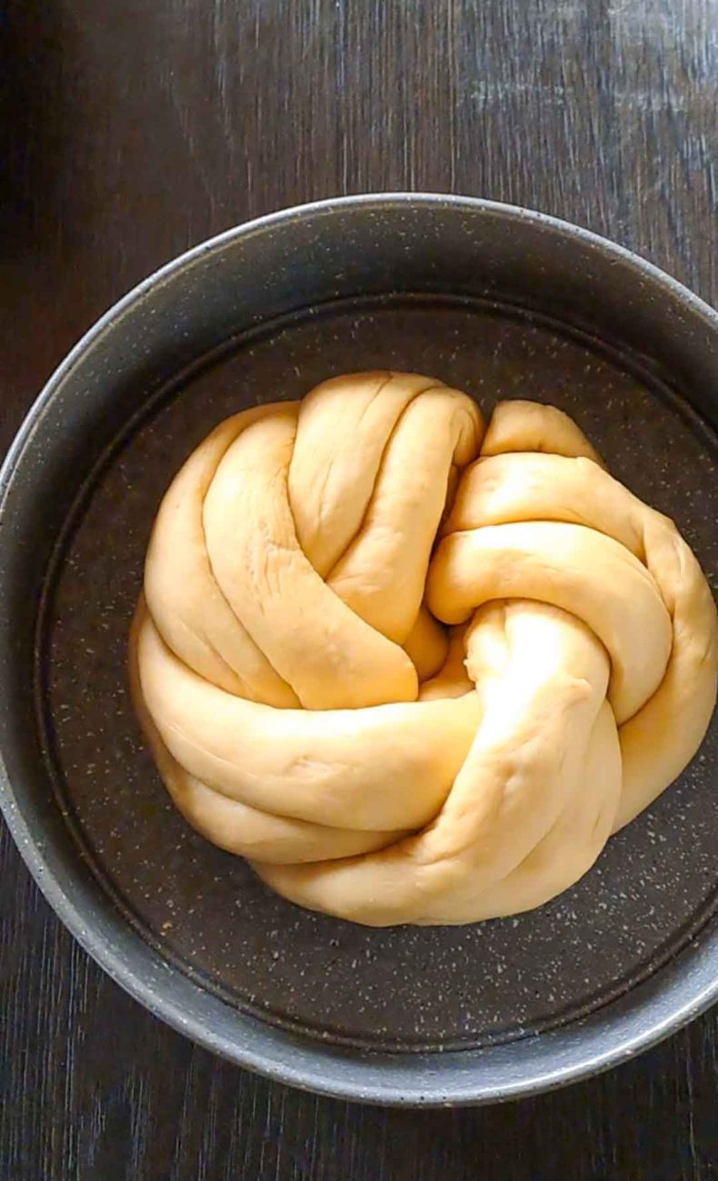 Сгънете ги в кръг и ги сложете в предварително намазана тава с масло, покрийте я и изчакайте отново да втаса.