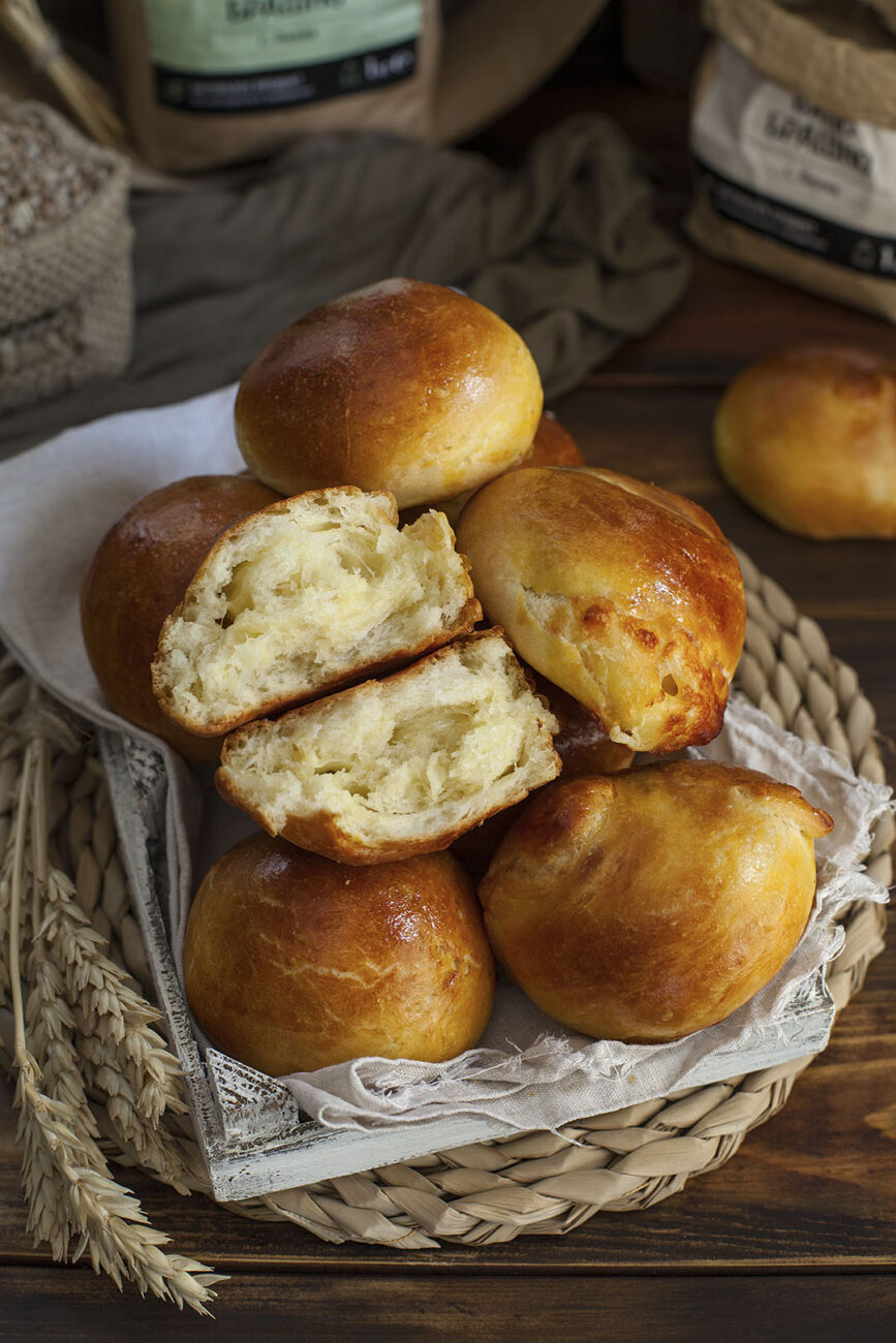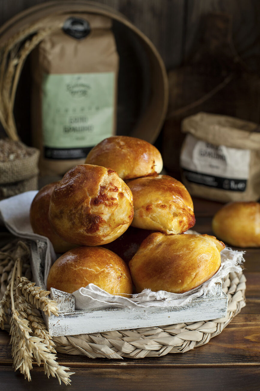 Тези ароматни питки са истинска наслада за сетивата. Съчетанието на бяло брашно от спелта, познато със своя лек орехов вкус, и нашето пшенично брашно с високо съдържание на протеини, създава уникална текстура – мека, еластична и пухкава. Подходящи за всякакви поводи, те са лесни за приготвяне и предлагат безкрайни възможности за добавяне на различни сирена или подправки, за да придобият вкуса и аромата на любимите ви вкусове.