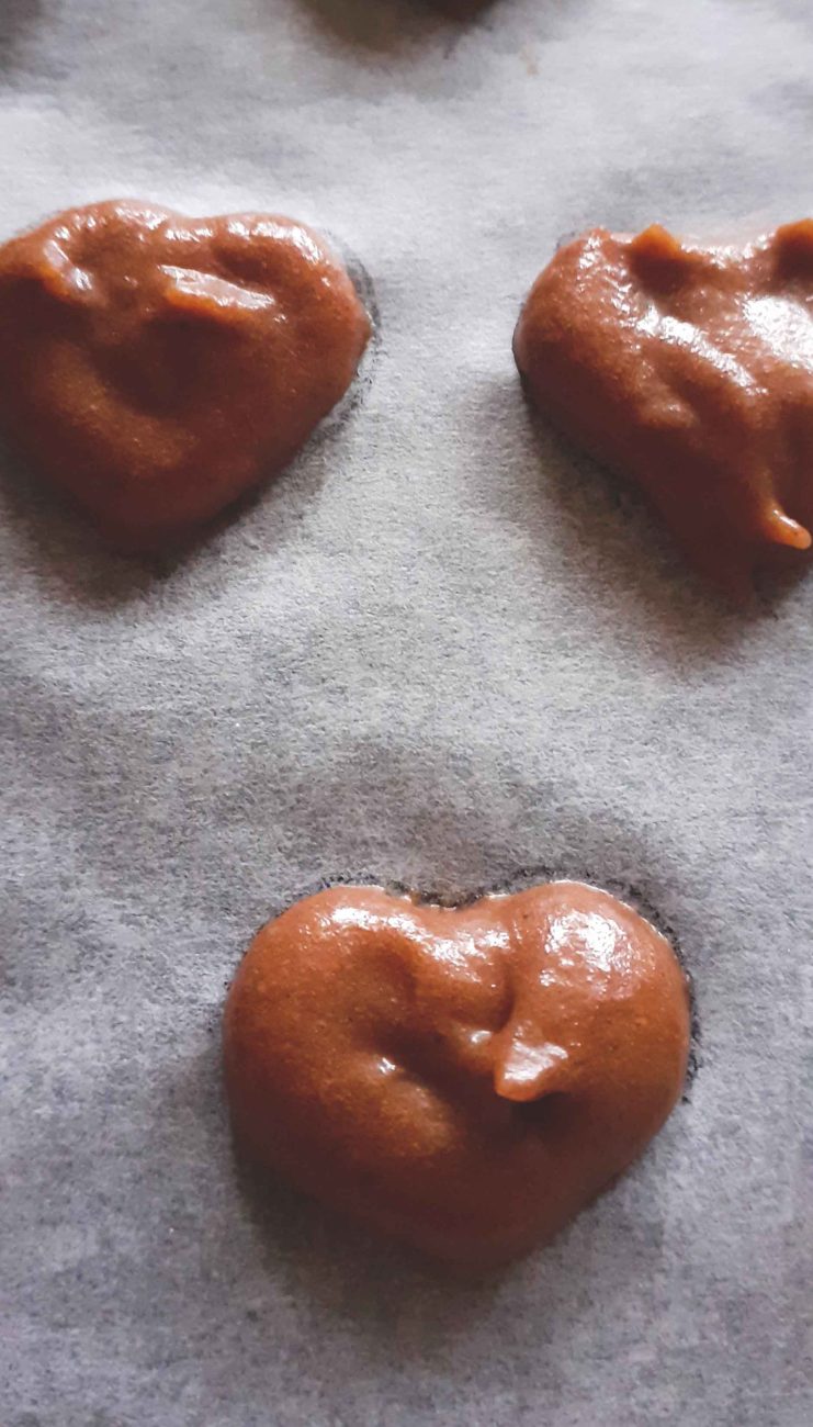 както сметнете за добре. Когато сте готови, разбийте с ръчен миксер съставките за запълване на фигурките, изсипете сместа в пош за еднократна употреба или с малък накрайник и запълнете очертанията. За по-деликатно изпълнение, минете с клечка за зъби, за да изравните хубаво. Поставете листа върху тавата и сложете в камерата до момента за печене.
