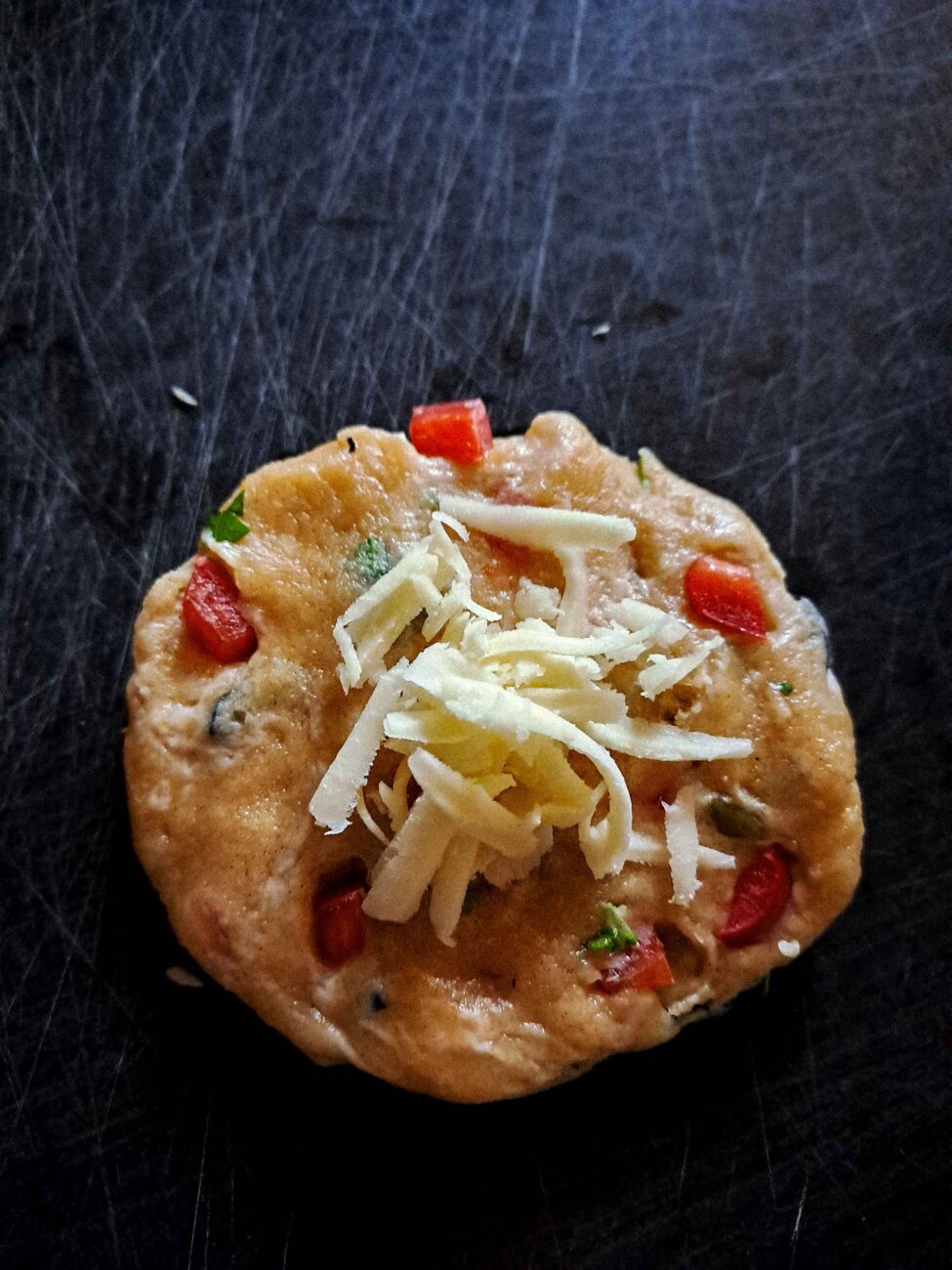 Разделете тестото на 30 къса по около 45 гр всеки. Върху леко набрашнен плот разстелете с пръсти тестото, сложете 1 ч.л. от настърганото сирене, прехлупете дясната част към центъра, след което и лявата. Обърнете тестения къс и поставете в тава, покрита с хартия за печене. Повторете същото с останалото тесто.