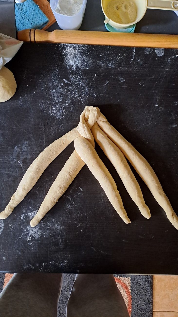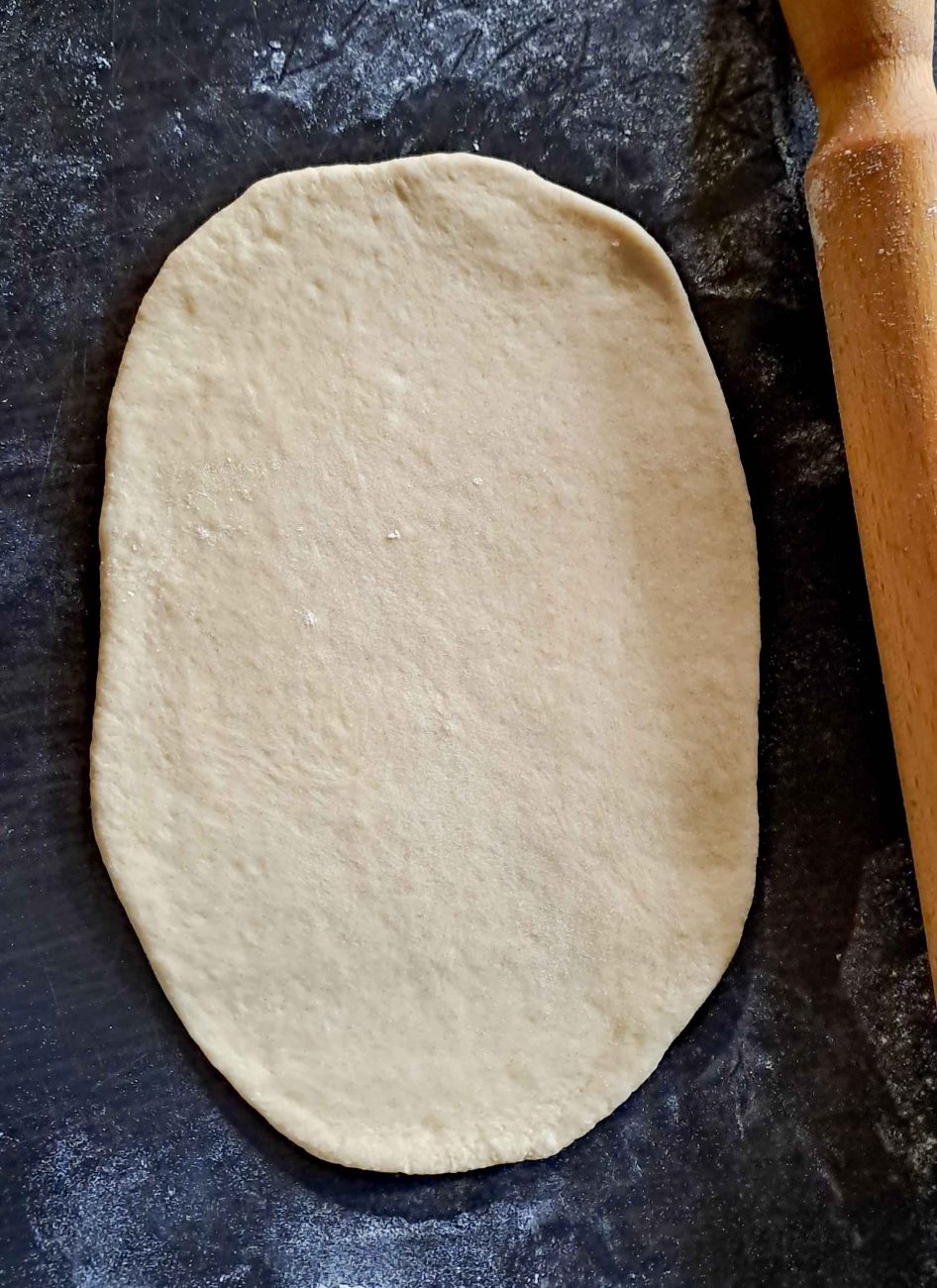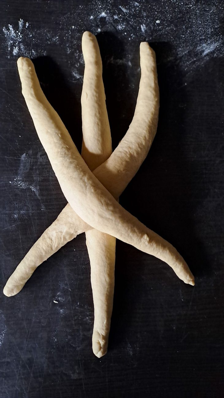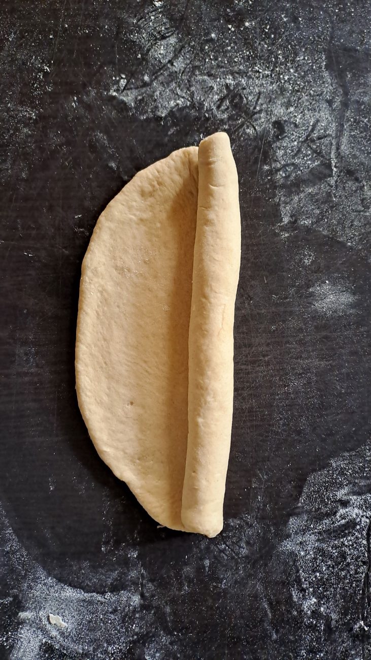 След почивката, оформете всяка топка на фитил, който е по-дебел в средата и изтънен в края – разточете тестото във формата на овал, навийте го плътно и оформете фитила.