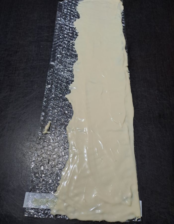 За пчелната пита: Разтопете кувертюрата на водна баня. Отделно разтопете маслото със сладкарската боя, смесете ги и оставете настрана за 5 минути. Поставете почистеното фолио с мехурчетата нагоре и изсипете шоколада. Загладете добре и изчакайте да се стегне, но не и да стегне напълно. Внимателно вдигнете фолиото и облепете тортата с него. Когато шоколадът се стегне, свалете фолиото внимателно. Друг вариант е просто да начупите/нарежете на големи парчета пчелната пита и да декорирате тортата с тях.