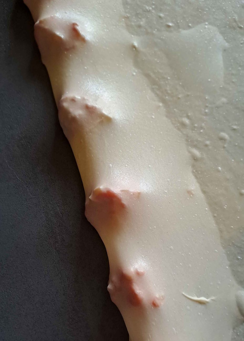 разточете с точилка кръг с диаметър 30 см, след това издърпайте към вас всеки край, колкото позволява, докато изтъните максимално кората.