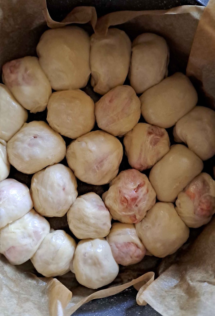 Загрейте фурната на 200С, намажете с масло хапките и изпечете за 45-50 мин. или до златист загар.