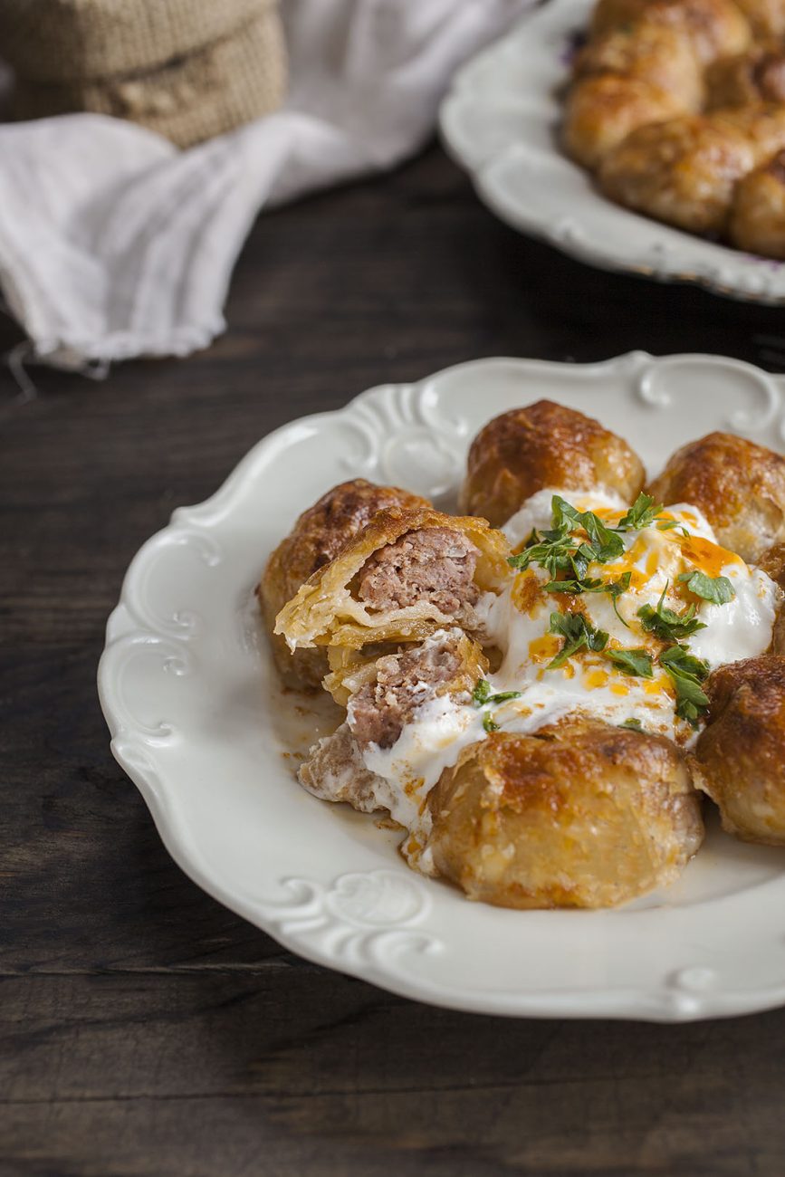 Тази рецепта попада в категорията- вкусна и питателна храна. Вдъхновени от турската кухня, за която знаем, че на почит са тестените изделия и чудесно овкусените ястия, тези вкусни хапки ще се превърнат в любимо ястие на малки и големи.Ще я приготвим с домашни дърпани кори.