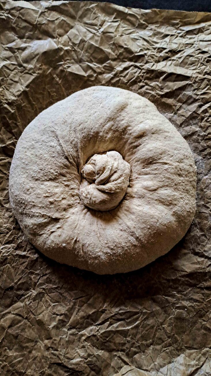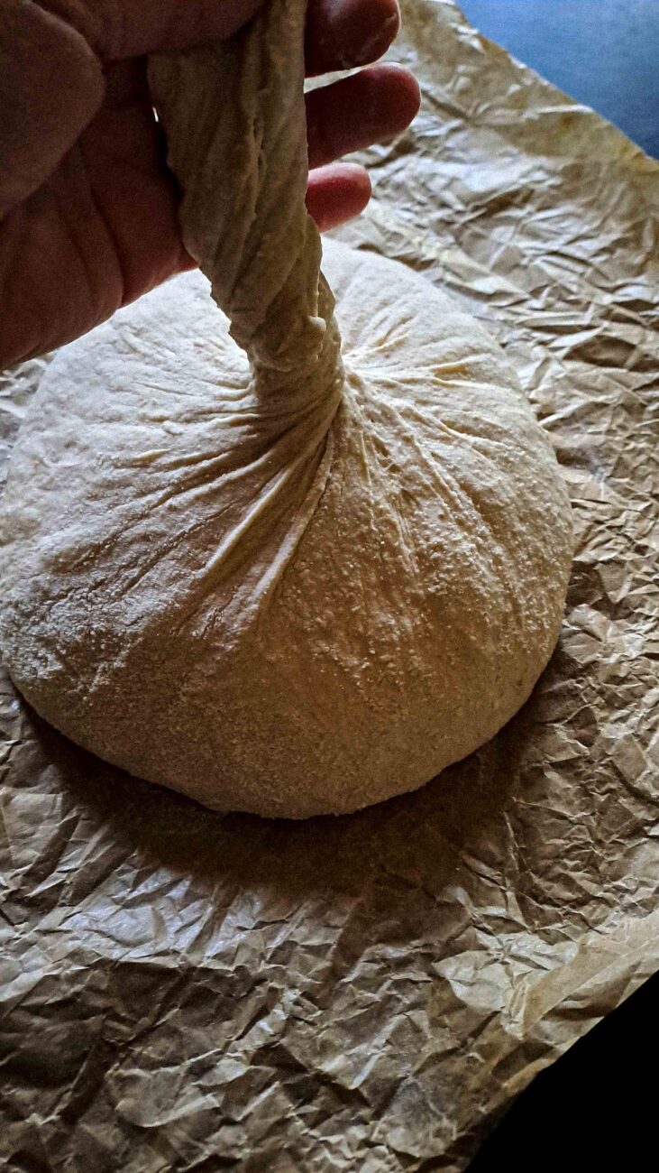 - Кръгъл банетон или купа, постлана с памучна кърпа и поръсена с брашно