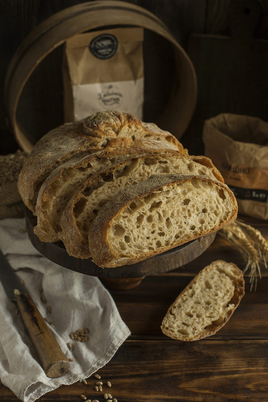 Този хляб се отличава с хрупкавата си, дебела коричка и мека, леко влажна среда и неравномерно разпределени дупки. Коричката е резултат от бавното печене, а меката сърцевина се постига благодарение на дългата ферментация с квас и използването на нашето качествено брашно.